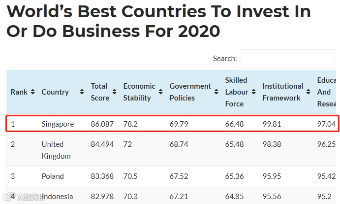 在著名商业杂志CEO WORLD,关于2020年全球最佳的投资或经商国家的最新调查研究中,新加坡拔了头筹!