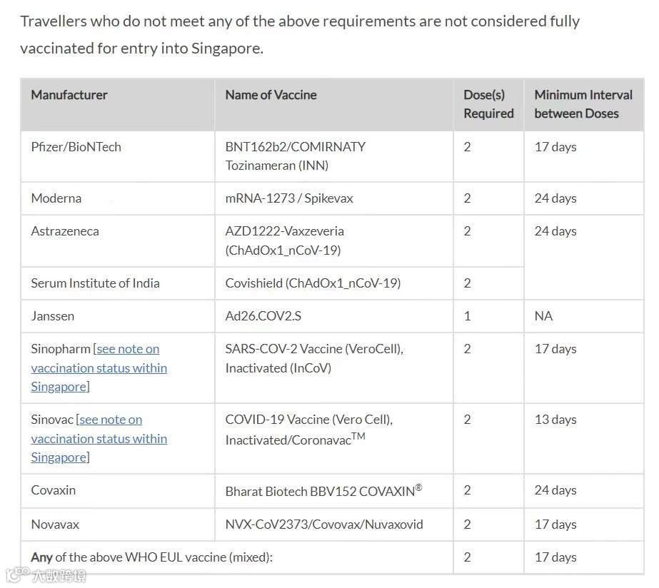 注:有关疫苗接种要求的更多详细信息,请参阅https://safetravel.ica.gov.sg/health/vtsg