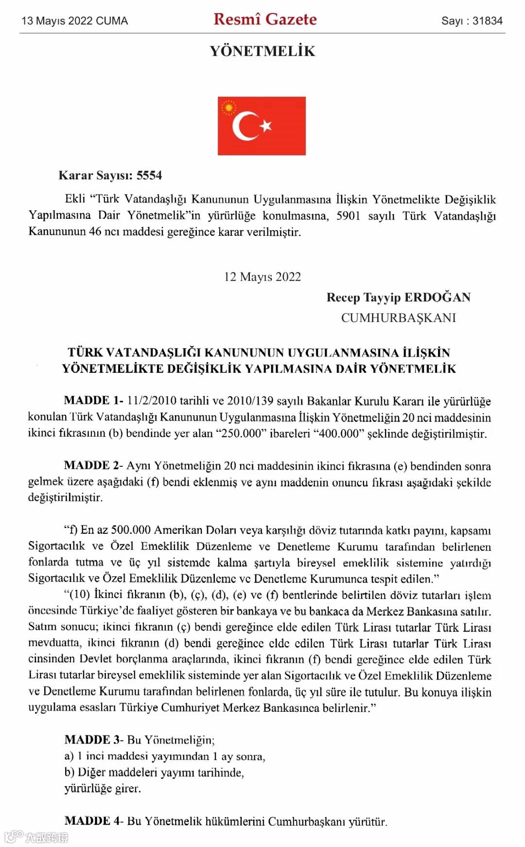 最近这段时间,对于土耳其购房移民项目的讨论频出,5月12日,土耳其内政部发文,6月13日起购房入籍投资额将从25万涨到40万美金,现行25万美金政策将在6月12日作废。