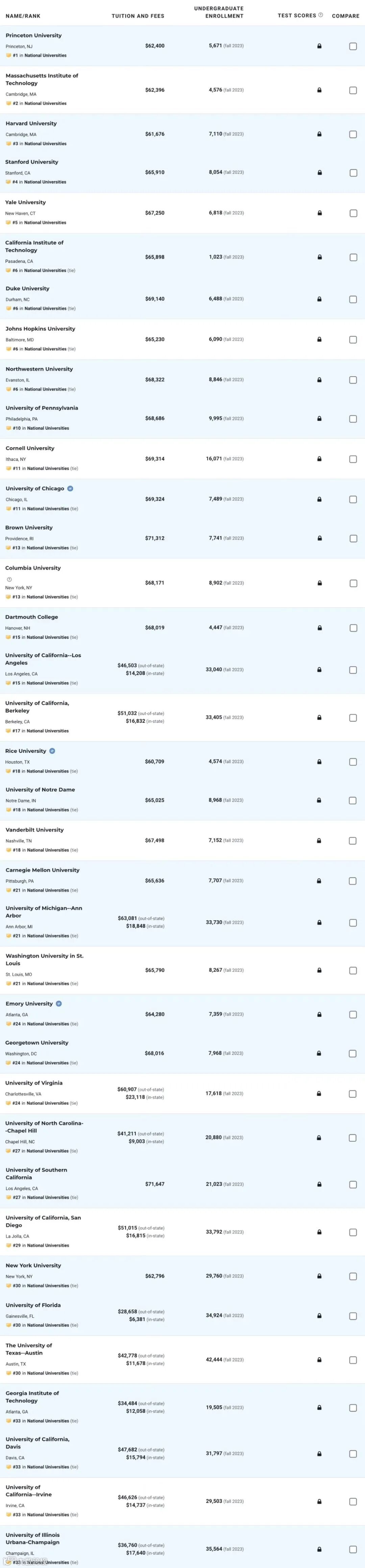 其实,前两周宾夕法尼亚大学的校报《宾夕法尼亚日报》提前曝光了U.S. News全美大学前十名榜单,前五名均和去年没有区别,依旧是普林斯顿大学、麻省理工学院、哈佛大学、斯坦福大学和耶鲁大学。