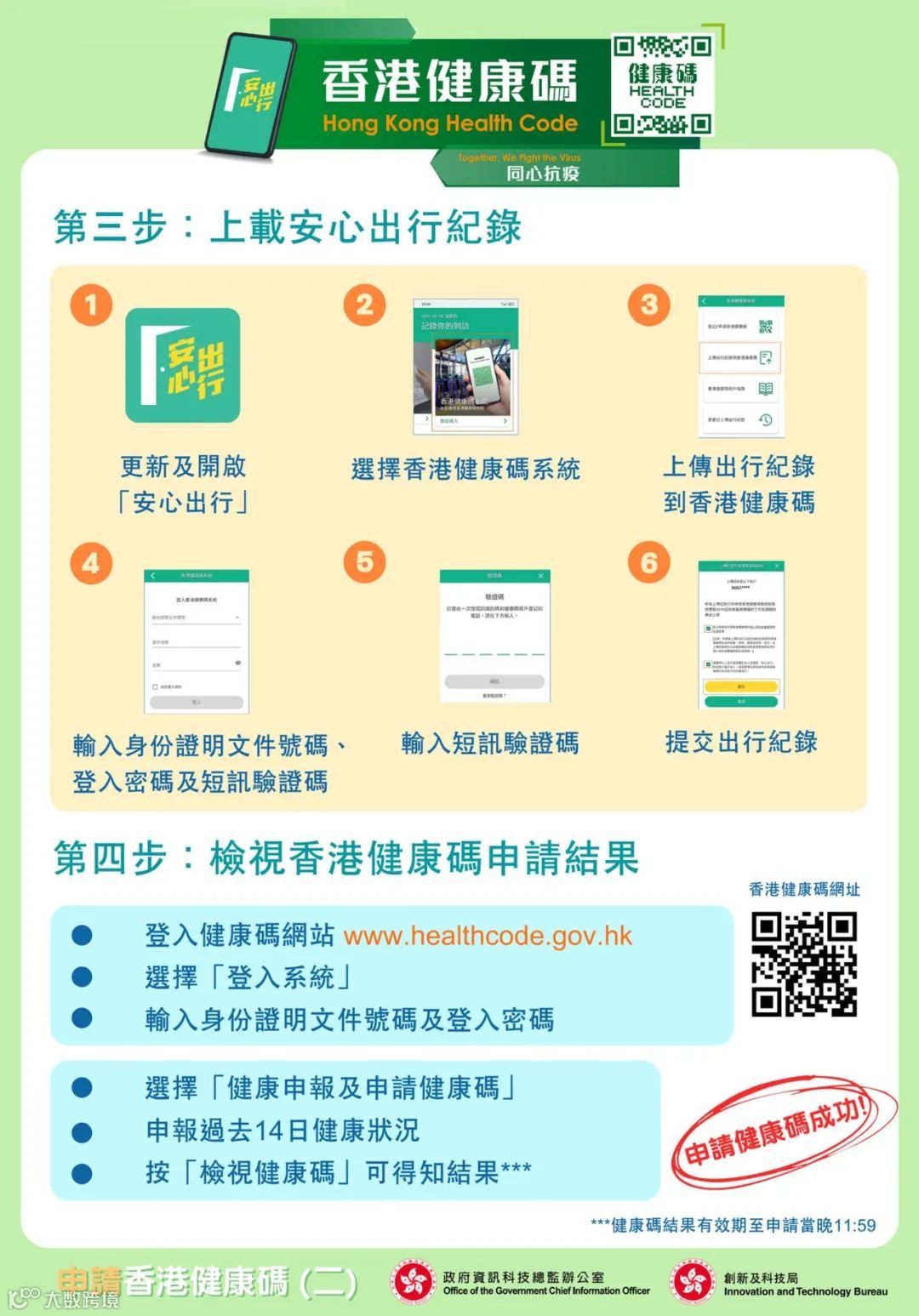 “港康码”系统今日9时正式开通,申请前市民要先更新“安心出行”至3.0版本,再到网站实名登记申请注册帐户。成功开通帐户后,用户可透过“安心出行”3.0版本,上传出行纪录到“港康码”系统,输入身份证明文件号码、登入密码及短讯验证码,然后于“港康码”网站登入系统获取“港康码”。