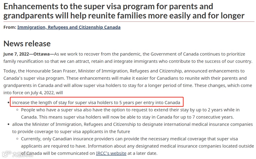 近日,加拿大移民部长肖恩弗雷泽宣布,超级签证的super visa的有效期将从之前2年大幅提升至5年!另外在5年到期后,还可以进行一次2年的延期。也就是说,未来超级签证将允许加拿大公民或永久居民的父母能够一次性的在加拿大停留7年。