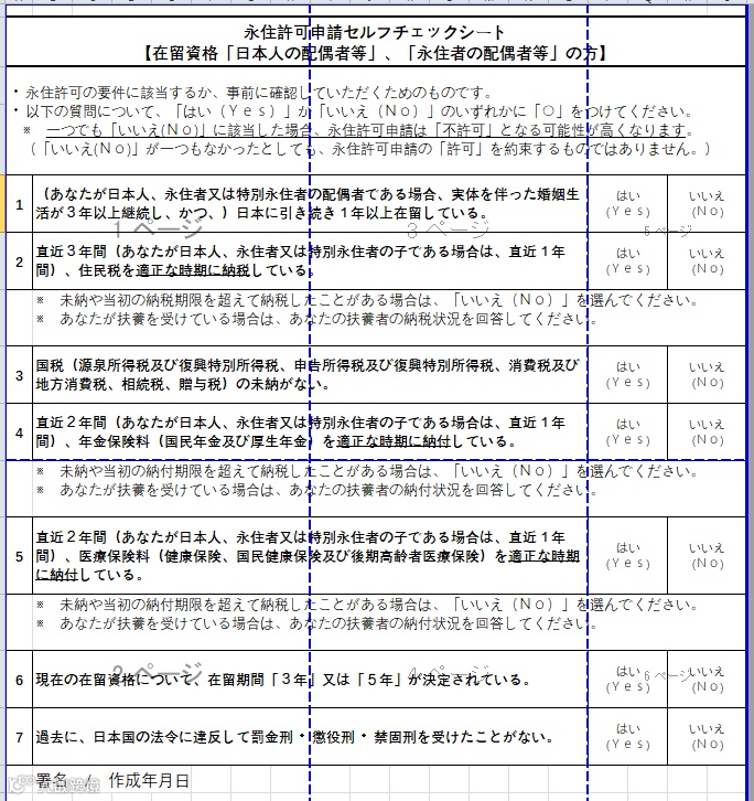 12月份推出的自检表为想要申请永住的外国人提供了一个重要的参考,至少在通过永住申请的第一关时,这些表格中的7个问题的标准是基本要求。