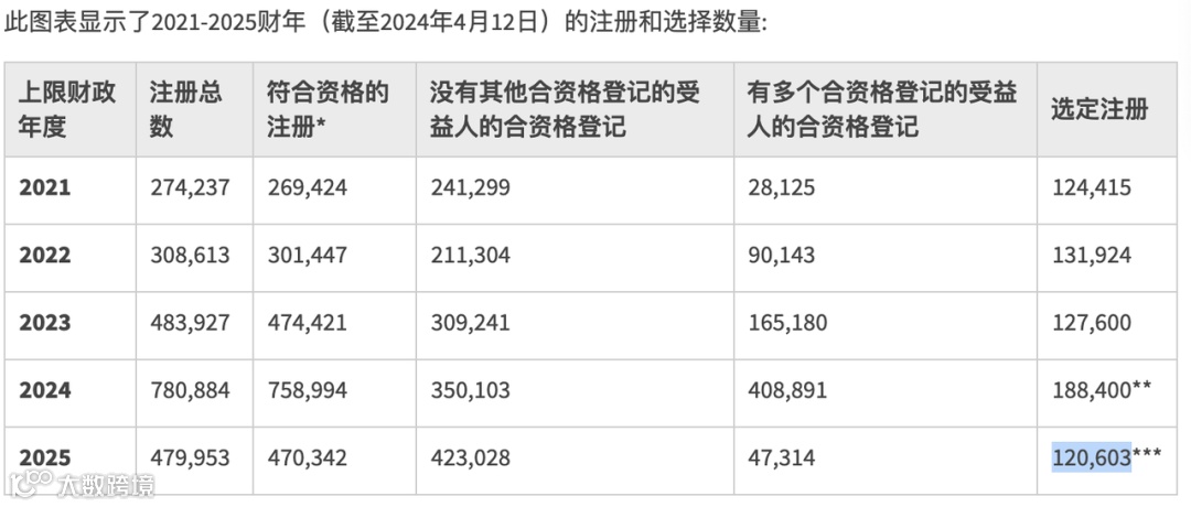 有效注册:在移民局“一人一抽”的改革下,今年总递交量为479,953份,有效注册470,342份,比去年758,994份的有效注册量下降了38.6%。总体人均注册数量为1.06个,和2023年的人均1.7个相比大幅度降低