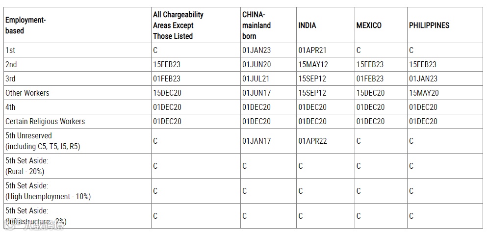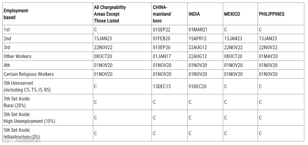 表A是指有签证名额的排期。表A排期到了,就是说有一张绿卡名额可以签发给你了。当表A日期前进到申请人的优先日期,如果投资人在美国境外,且I-526已经获批,会收到广领馆的面试安排通知;如果人在美国境内,就可以在美国递交I-485转换身份申请了。