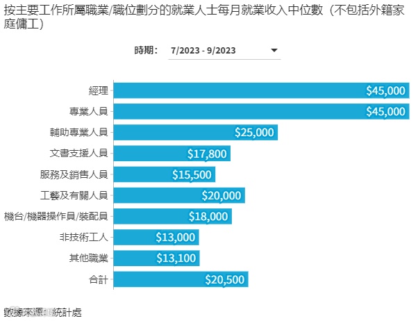 近日,香港统计处公布了2023年第三季度的就业人士收入数据。