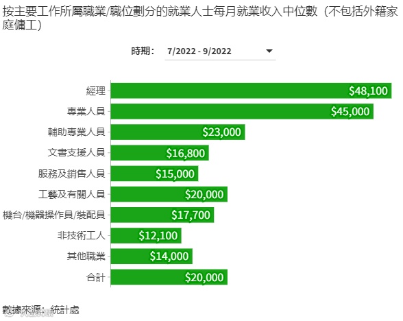 工艺及有关人员收入中位数为20000港元,较去年同期维持不变;