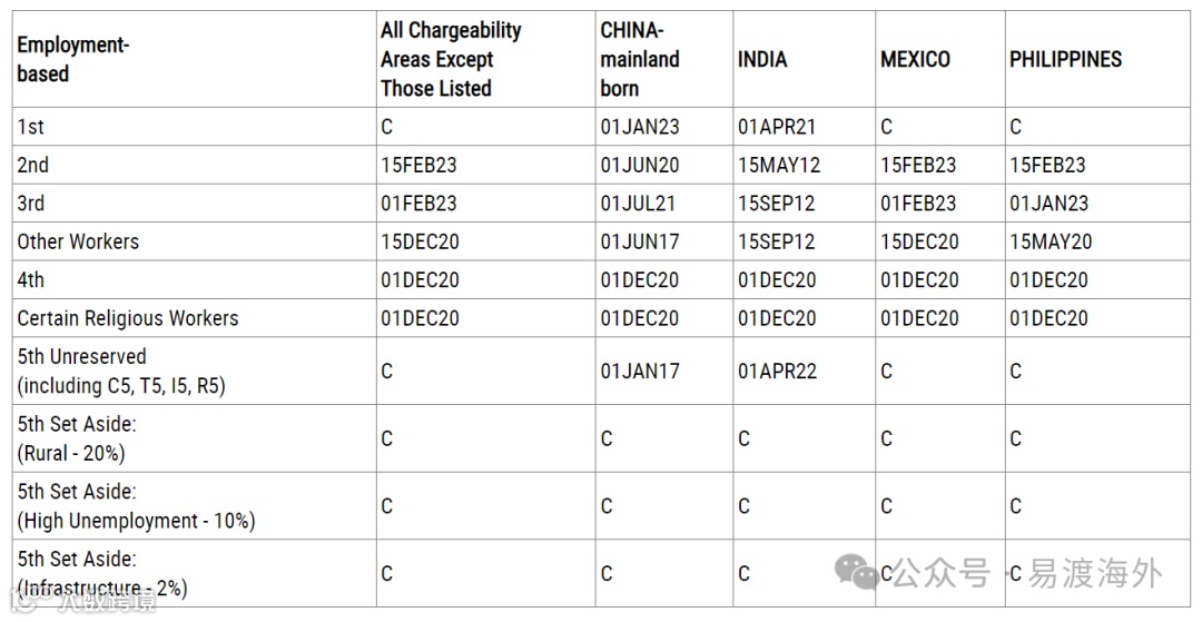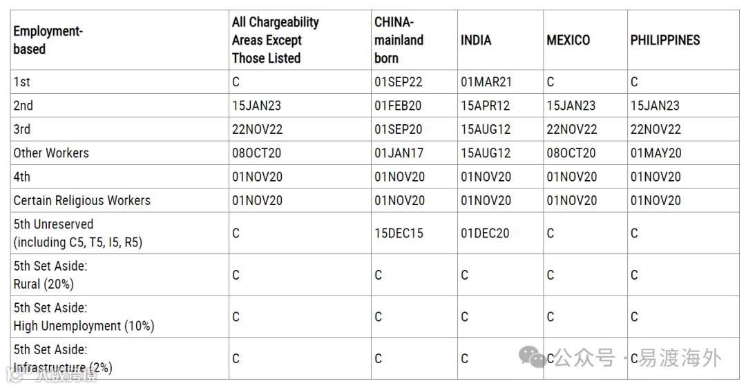 EB-1类别显示为2023年1月1日,原地踏步 -