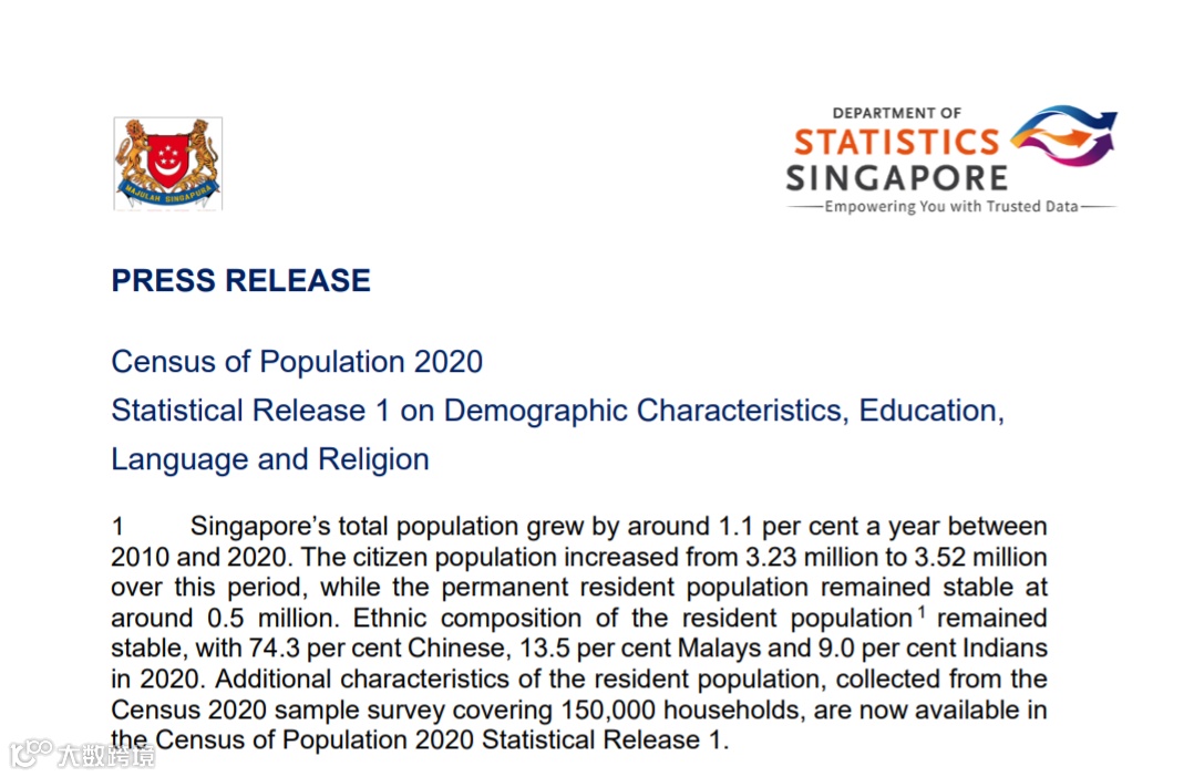 就在最近!新加坡统计局公布了“2020年全国人口普查”第一批数据!
