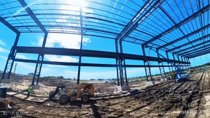 厂房主体钢结构以及屋顶桁架的持续组装和铺设 -