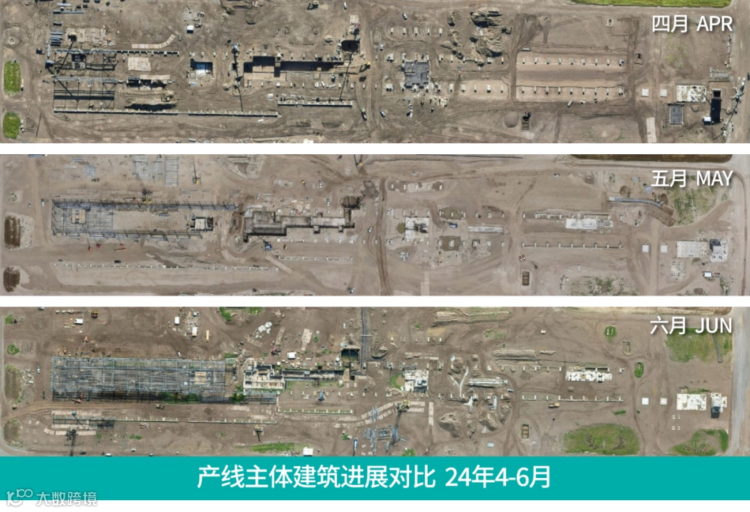 我们将将海霸的项目进展概述分为“厂区土建”和“厂房综合体”两个部分,向您更直观地展示4-6月海霸最新的建设进度,目前这一进度依旧小幅领先于计划目标: