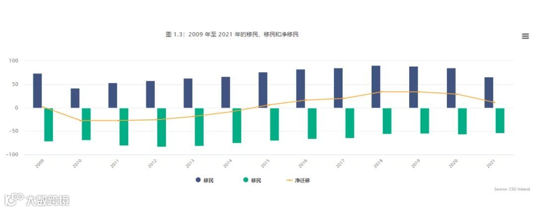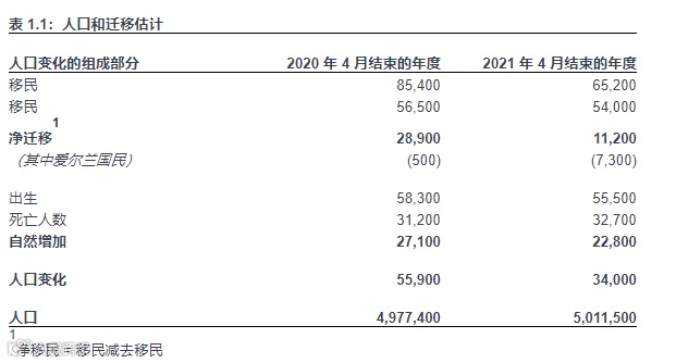 在截至2021年4月的一年里,移民到爱尔兰的人数估计为65,200人,而从爱尔兰移民海外的人数估计为54,000人。净移民人数达到11,200人,而前一年为28,900人。由于新冠疫情和流动限制等原因,爱尔兰入境和出境的移民人数都有所下降。