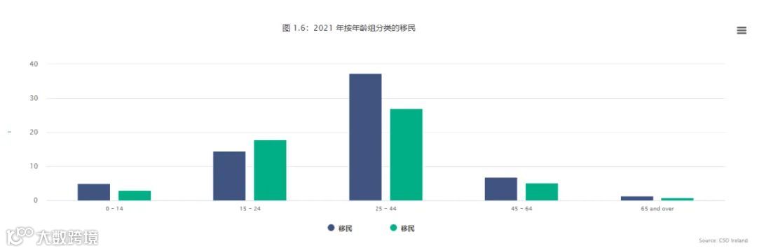 在截至2021年4月的一年中,大多数移民的年龄在25-44岁之间,有37,400 名移民,约占总数的五分之三(57.3%)和27,000名移民(占总数的一半)属于这一年龄组。