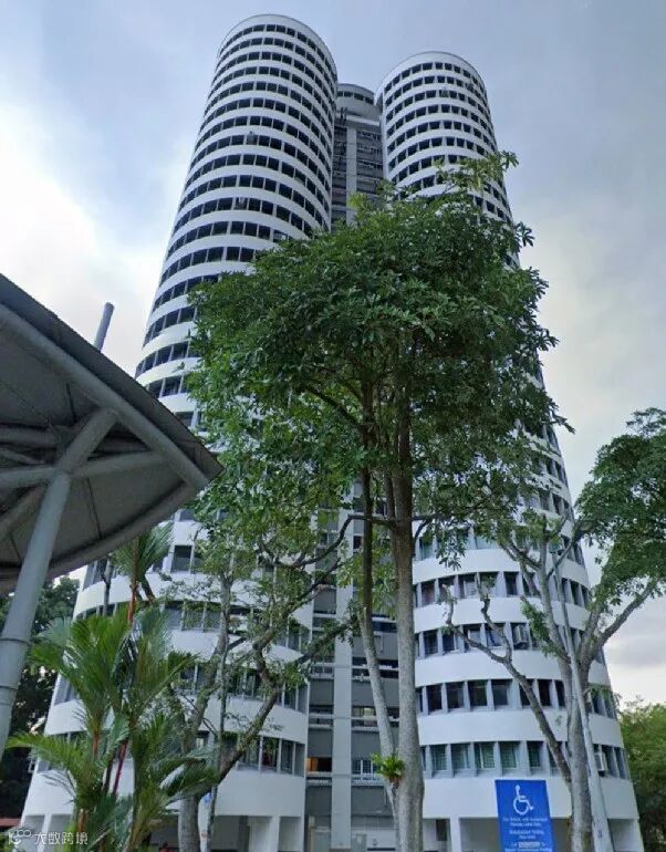 这座组屋建于1981年,由4个圆形大柱组合而成,是宏茂桥的地标建筑。这也是建屋局的尝试之一,虽然有人觉得这栋楼看起来像个巨大的四叶草,挺可爱的,但也有人批评圆形的墙壁比较难摆放家具。