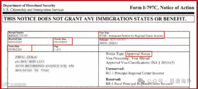 2022年10月与我们签约,2023年5月递交I-526E申请,期间同时递交了I-485、I-765和I-131申请,2024年2月获批I-526,可以说是完全踩准了无排期的快速通道,现在美国安心等待有条件绿卡获批。