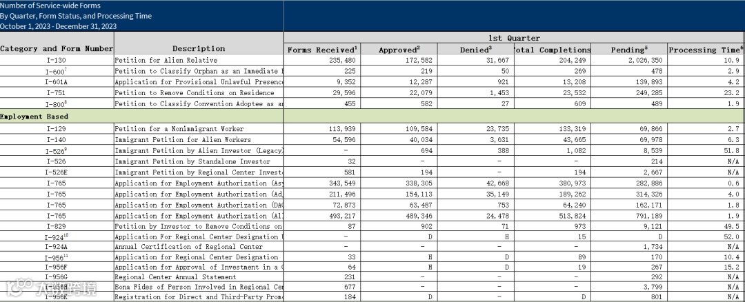 近日,美国移民局(USCIS)在其官网公布了2024财年首季度(即:2023年10月1至2023年12月31日)EB-5案件的各项统计数据。