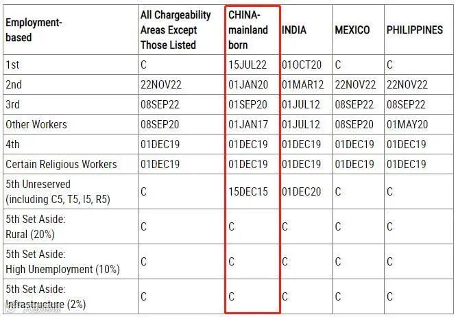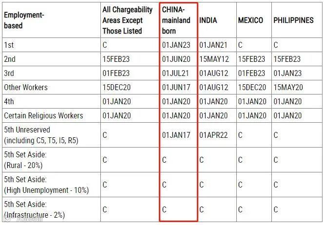 EB-5(直投和区域中心),排期为2017年1月1日,无变化; -