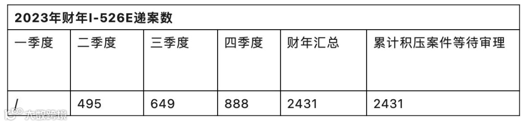 美国移民局在2023财年第二季度时,首次公布EB-5新政下I-526E审批数据。2023年第二季度收到495份申请;第三季度收到649份申请。