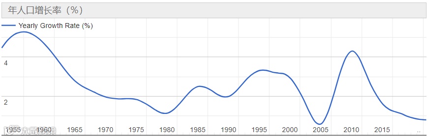 来看历史数据,新加坡人口增长率在2005年到2010年期间曾有大幅上升,2010年的人口增长率一度超过4%。