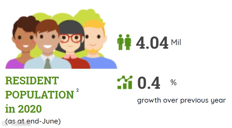 截至2020年6月,常住居民人数为404万,较上一年增加0.4%,其中公民352万,永久居民52万。