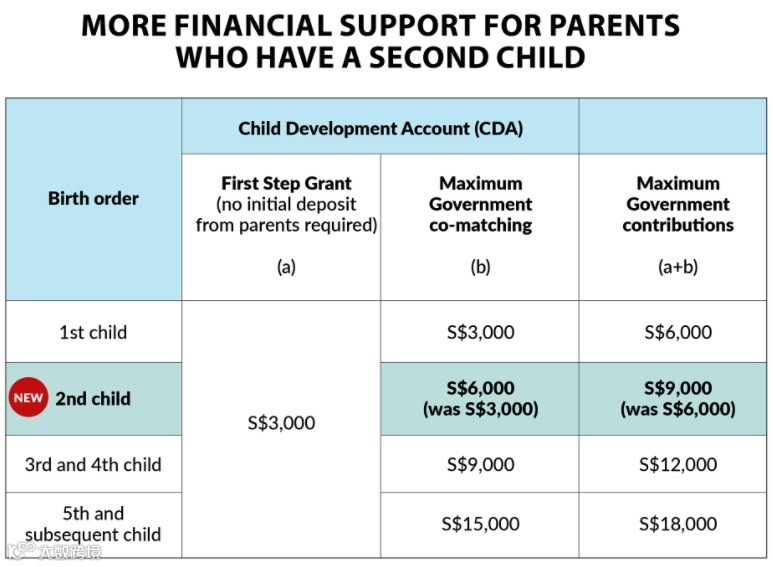 此外,加上每个孩子都将获得额$3000新元的育婴户头起步津贴(First Step Grant),二胎宝妈宝爸相当于可以一共获得$9000新币的现金补助。