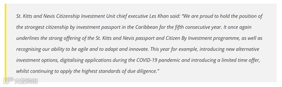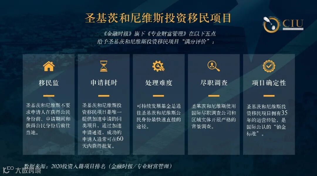 金融时报旗下《专业财富管理》杂志曾发布报告称,圣基茨CBI是世界最佳的公民身份投资计划之一,是获取公民时间最快的,提供最值得信赖的、最具家庭吸引力的CBI计划之一。