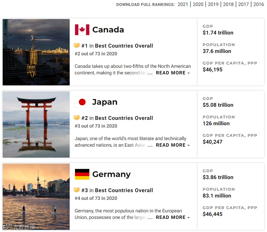 4月13日,权威机构《美国新闻与世界报道》(US News & World Report)发布了《2021年全球最佳国家排行榜》,根据惯例,这份榜单由BAV集团和美国宾夕法尼亚大学沃顿商学院(Wharton School)共同研究整理。榜单显示,即使在疫情的特殊情况下,日本仍凭借其过硬的实力晋升1位,跻身全球第2!
