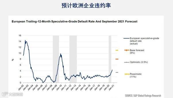 债券投资方面,标普全球评级 (S&P Global Ratings) 在2020年底表示,疫情冲击将导致未来九个月美国和欧洲的企业违约率增加一倍以上,并悲观地预计美国企业违约率可达到12%,欧洲企业违约率保守预计会从2020年9月的4.3%,将会在2021年9月急升至8%。