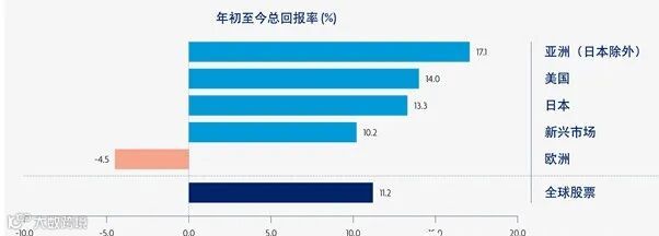 纵观2020年,表现最好的地区是亚洲地区 (除日本以外),因为亚洲国家对疫情采取有效的控制措施,更早重启经济。紧随其后有美国,它的科技、电子商务和在线服务公司等概念股股价暴涨。