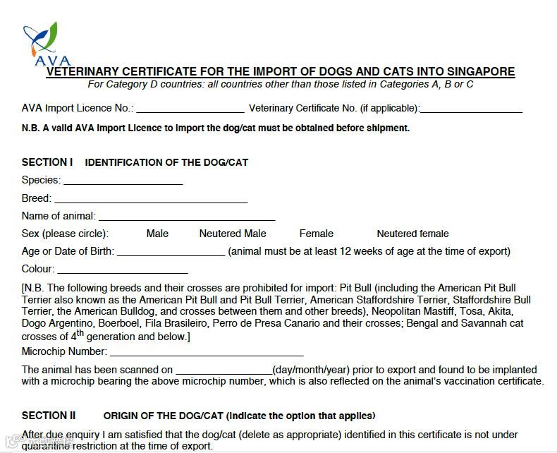 另外就是,狂犬病抗体报告合格之后,凭此报告向新加坡农业食品兽医局(AVA)申请动物入境许可证(Import Permit)。