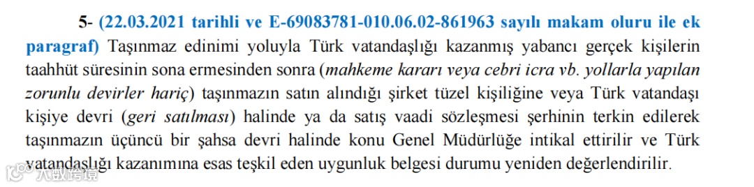 2021年3月22日,土耳其修订了关于《土耳其公民法实施条例》的部分内容,主要涉及G章节,即“外国人之间的房产交易”问题。此次政策的调整对于外国人之间的房产交易行为做出了更加细致的规定,尤其规范了有意通过购买房产申请土耳其公民身份的外国投资者之间的房产交易行为。