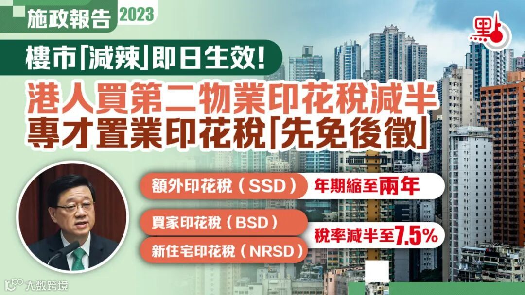 买家印花税和新住宅印花税的税率减半,两者均会由15%减至7.5%。