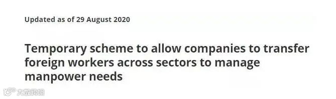为了降低入境工人给新加坡带来的疫情风险,工作通行证持有者进入新加坡的数量被限制在非常小的范围内,新加坡人力部与8月29日公布延长这项计划,帮助更多公司雇佣已经在新加坡的工人,这项临时计划将延长至2021年2月28日。