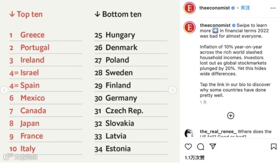 近期《经济学人》就编制了以GDP增长、通货膨胀、通货膨胀范围、股市表现和公共债务的五个经济和金融指标数据,并对34个主要是富裕国家的这些指标进行了分析排名。