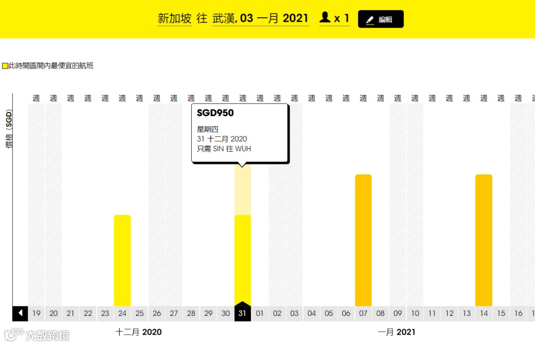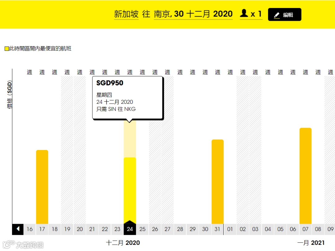 单程经济舱低至S$950