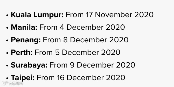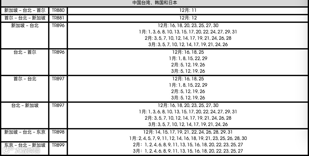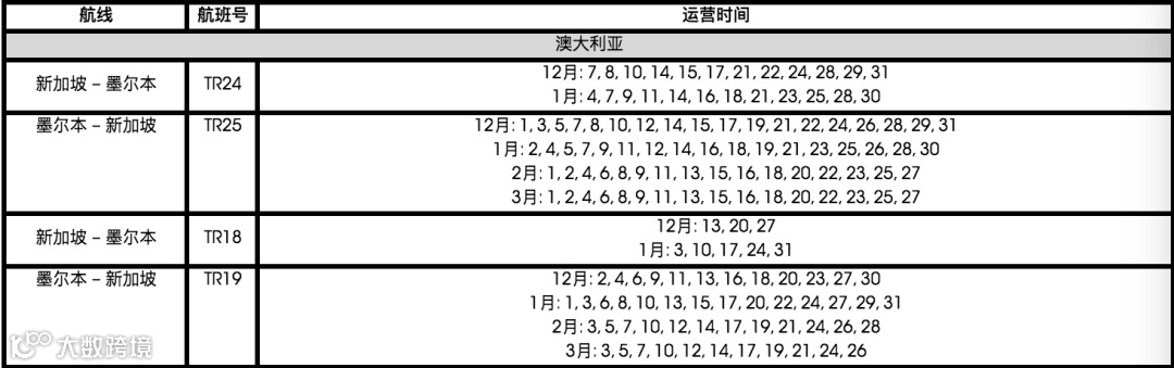 酷航最新未来3个月航班表