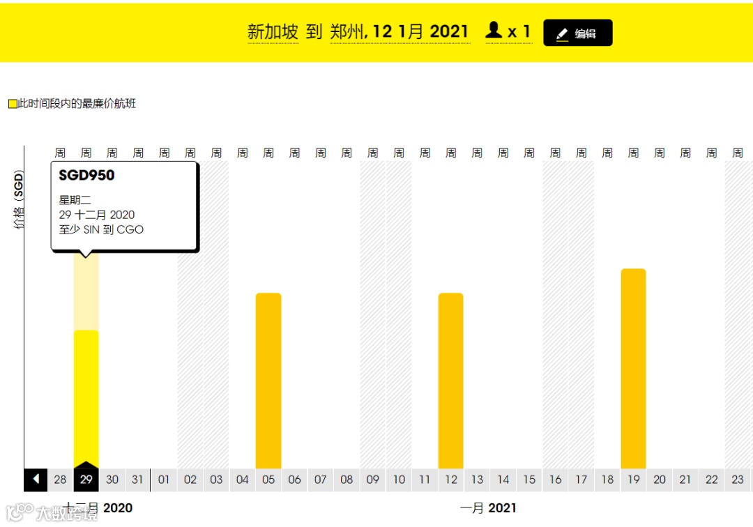 60天内最低票价