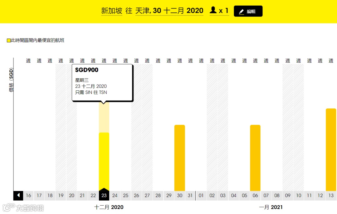 单程经济舱低至S$900