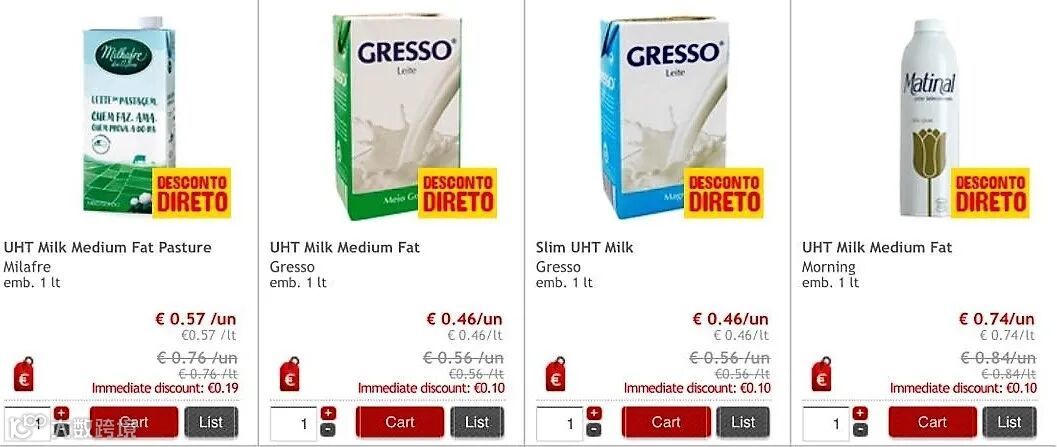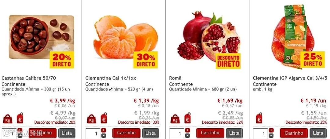 下面我们看看葡萄牙当地最大的零售连锁超市——Continente网上超市的商品价格,该超市支持网页和APP下单两种方式~超市网址:https://www.continente.pt/pt-pt/public/Pages/homepage.aspx
