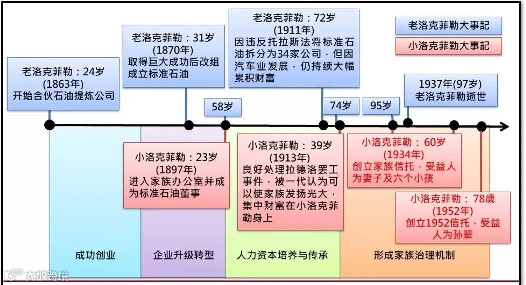 洛克菲勒一代打天下,二代治天下,这是提供国内一代企业家在家族传承上的借镜。而老洛克菲勒在美国宏观反垄断的威胁下,和小洛克菲勒共同完善三代以后的治理机制的处理方式——建立家族信托与家族办公室,更是值得国内家族传承所学习的。