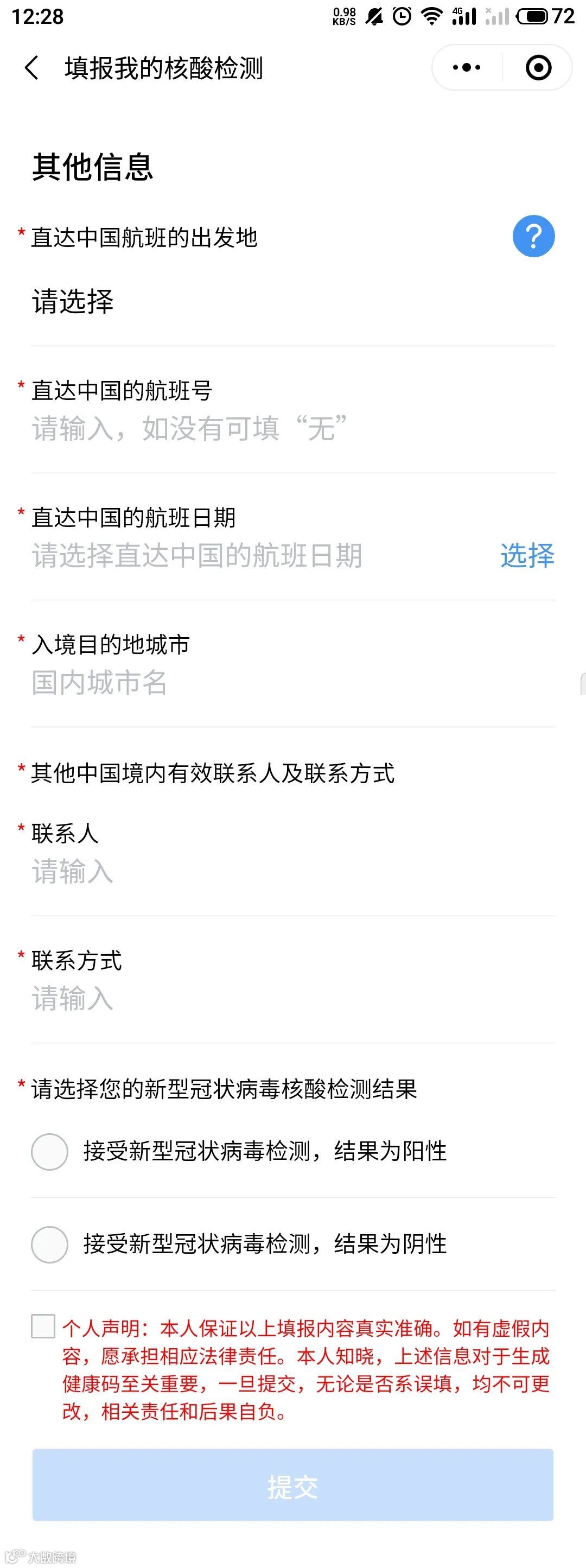 新增核酸码申报入口,和现有的绿通码并行(大多数国家2选1,部分国家必需核酸码)