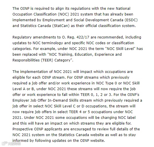 拟议的修正案将使OINP与新的2021年加拿大NOC国家职业分类系统保持一致。