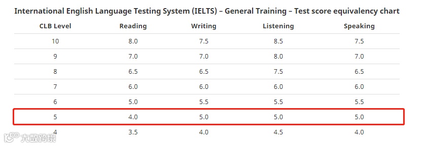 如果换算成雅思,CLB 5级相当于阅读四分,其他三项五分。