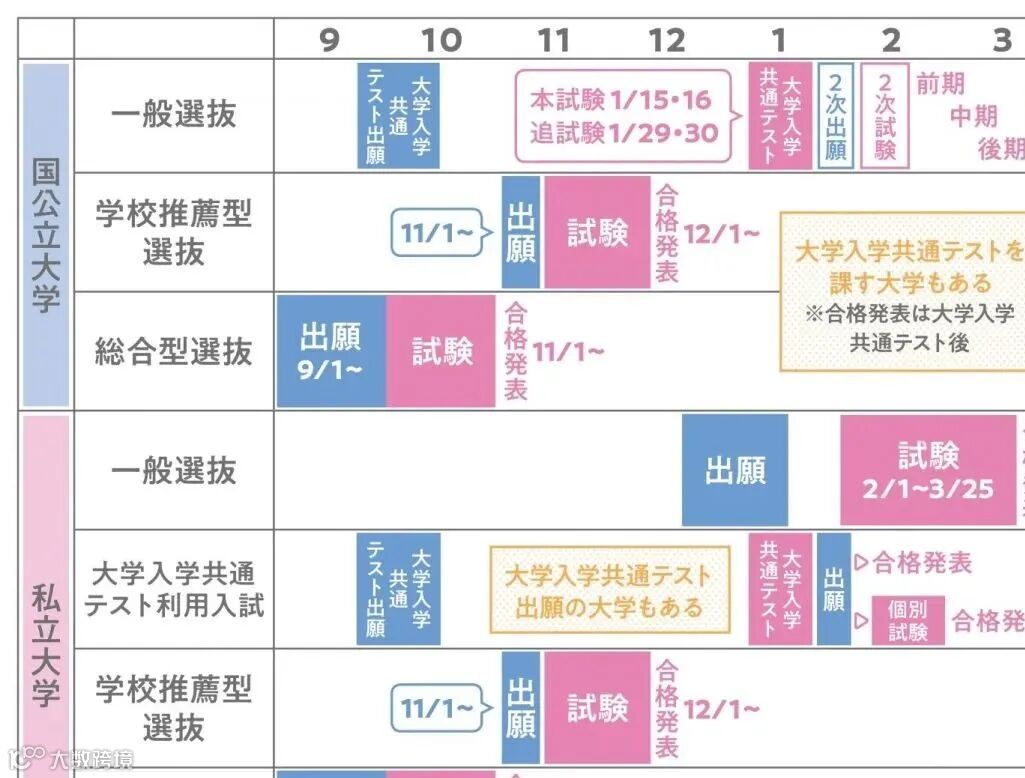 日本高考分为两次进行,分别是大学入学共通考试和二次考试。