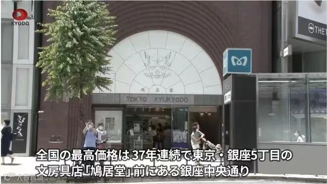 在全国的评估对象地点中,最高金额的地点是东京都中央区银座5丁目的“中央银座通”(鸠居堂前),每平方米为4,224万日元,连续37年排在全国第一。