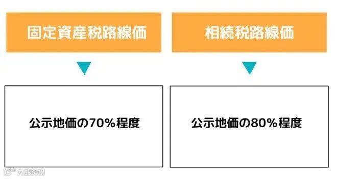 路线价格又分为固定资产税路线价和继承税路线价。固定资产税路线价是公示地价的70%左右,顾名思义是用来计算固定资产税的。而继承税路线价是公示地价的80%左右,作为计算继承税和赠与税时的基准被利用。