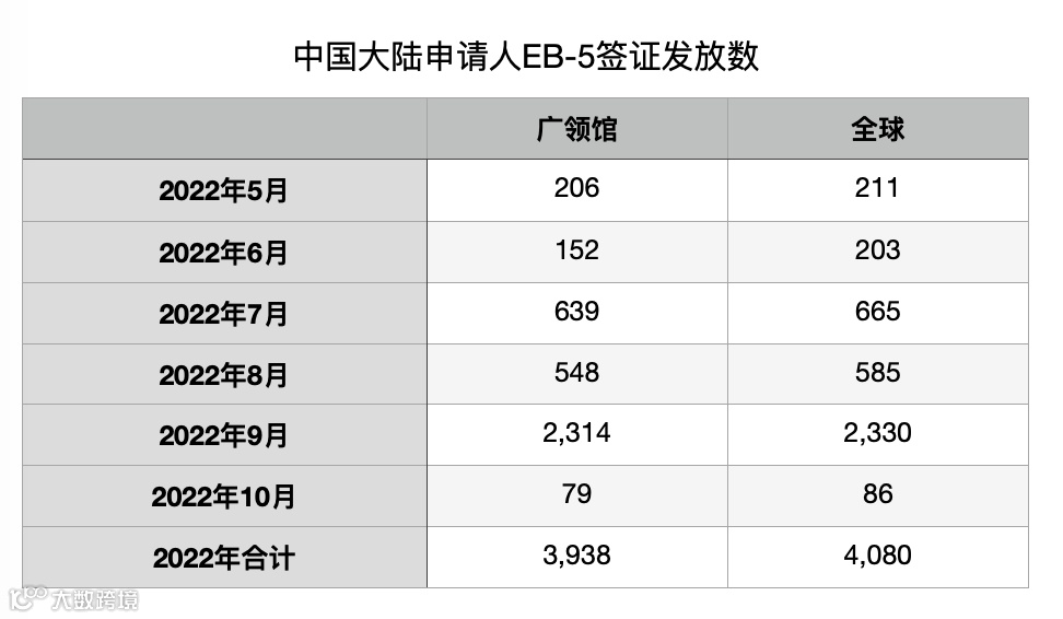 这个数据,仅仅是美国使领馆对中国人的EB-5签证发放数据,不包括给其他国家投资人签发EB-5签证的情况,也不包括移民局批准I-485后签发的情况。