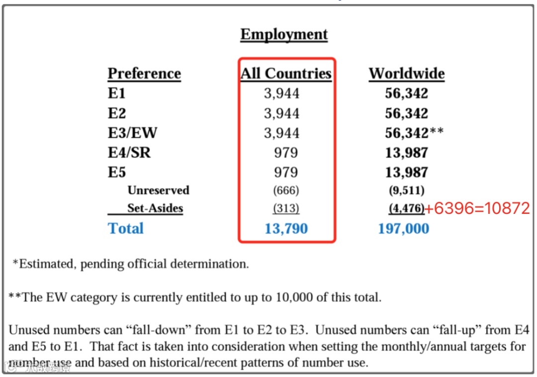 2023财年美国职业移民(基于就业的移民)签证/绿卡配额: