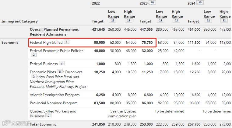 相较于过去每年10万人左右配额,2022年、2023年的快速通道配额(Federal High Skilled)仅为55,900个和75,750个。