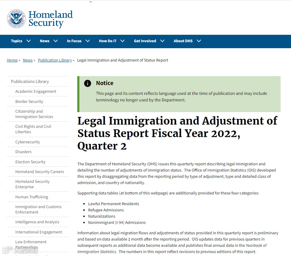 美国移民统计局(OIS)按照调整类型、录取类型和详细录取类别以及国籍国家的报告数据来编制的这份报告。